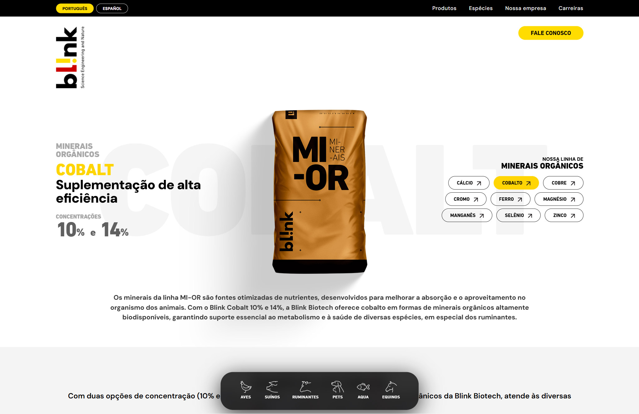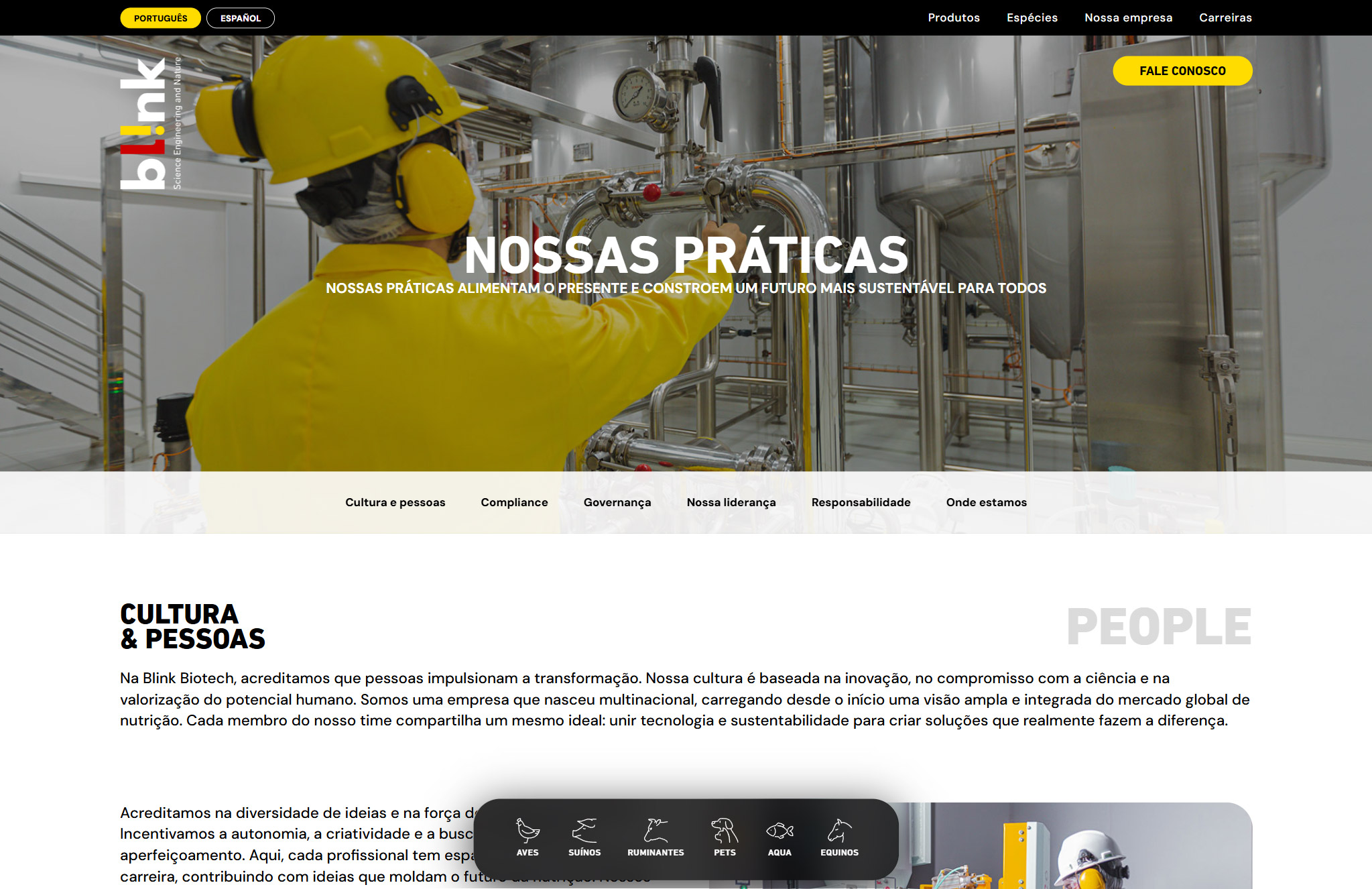 Uma plataforma institucional moderna, que posiciona a Blink Biotech como referência em inovação no setor e facilita o acesso às suas soluções. O novo site reforça autoridade técnica, melhora a compreensão do portfólio e apoia a tomada de decisão de produtores, nutricionistas e parceiros do mercado.